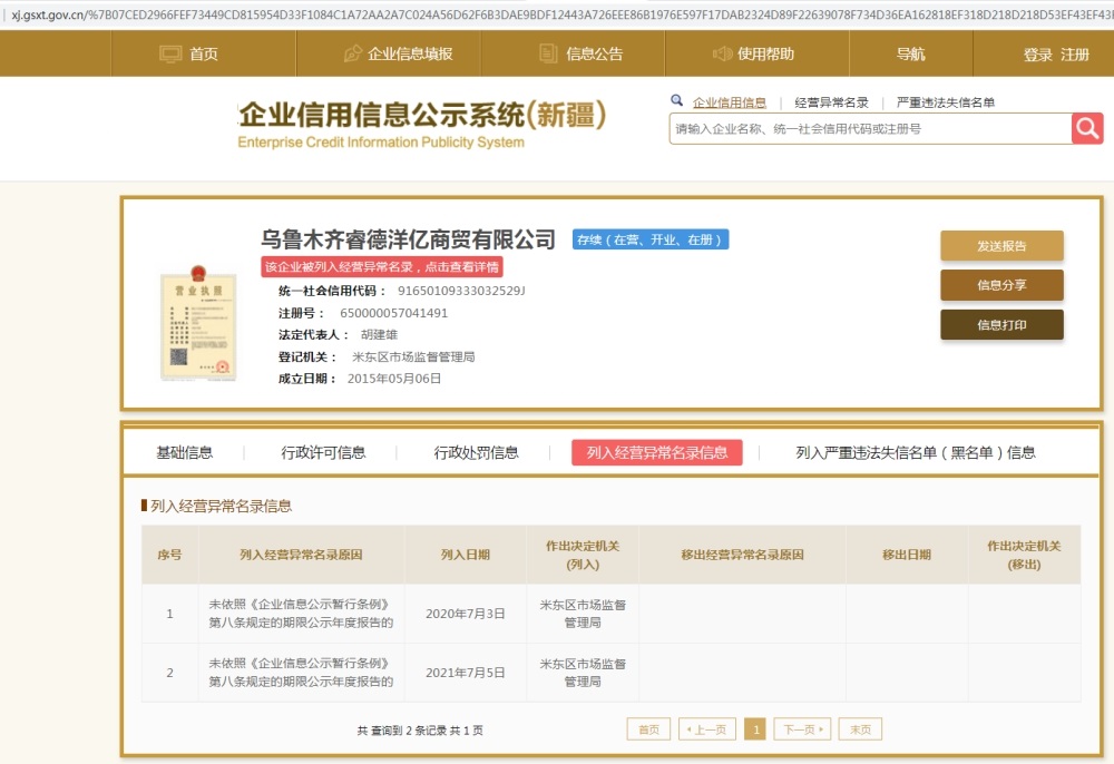 以新疆某公司为例,通过国家企业信用信息公示系统查询界面: