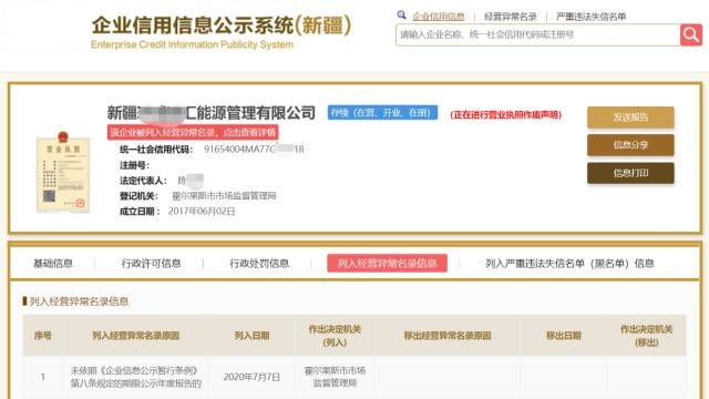 2、这里以新疆某公司解异常为例,选择企业信息填报: