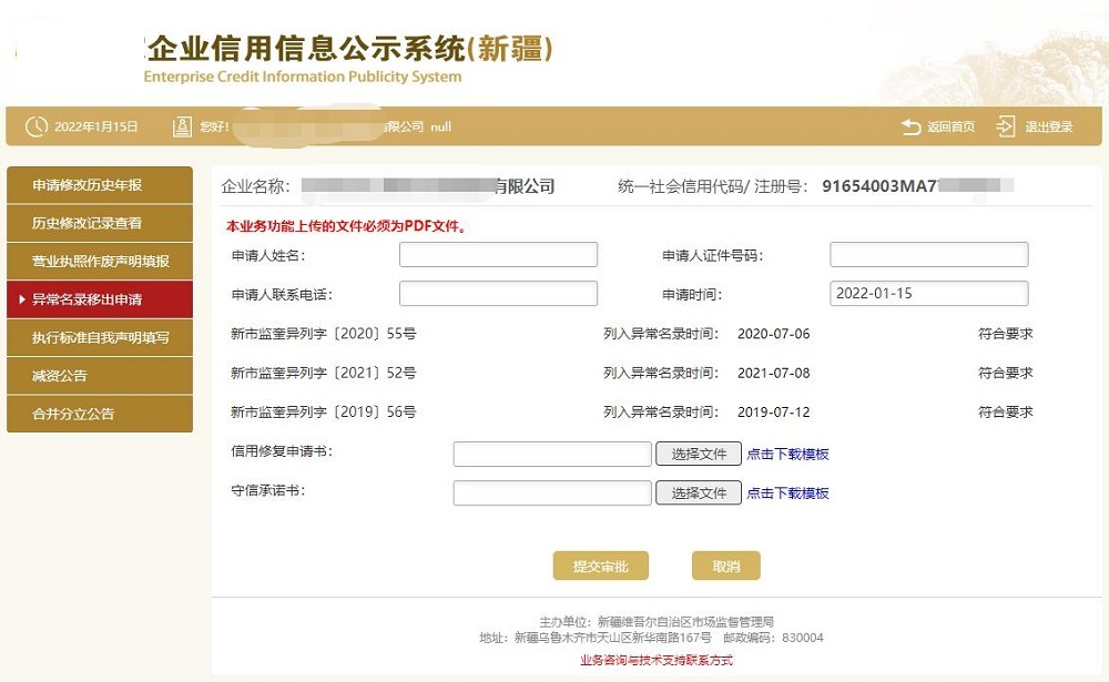 步骤五、按照《企业经营异常名录管理暂行办法》规定,工商部门在受理资料后,一般在5个工作日内会将企业移出异常经营名录,届时,企业可以在国家企业信用信息公示系统查到移出信息。
